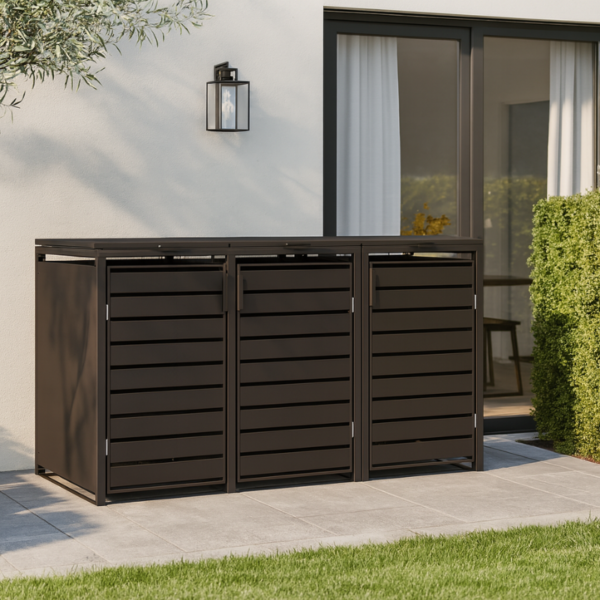MIKKO trivietė konteinerio pastogė – tai praktiškas, patvarus, ir modernus sprendimas, tinkantis tiek privatiems namams, tiek komercinėms erdvėms. Pastogė ne tik paslepia Jūsų buitinių atliekų konteinerį, bet ir suteikia apsaugą nuo vėjo, lietaus, ir kitų nepalankių oro sąlygų. Produktą taip pat galima panaudoti kaip nedidelį sandėliuką sodo įrankiams ar kitiems lauko daiktams.